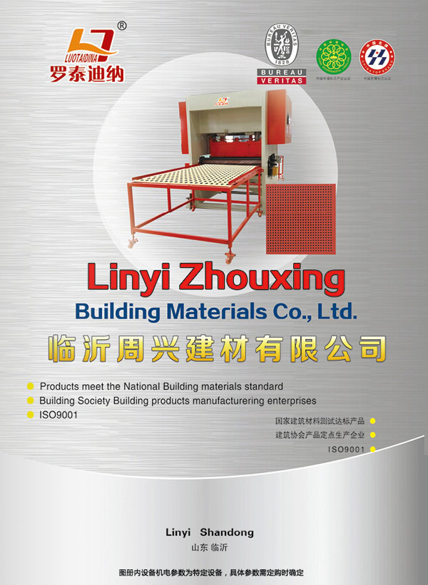 核心提示:临沂周兴建材有限公司,机械设备,临沂机械,天花板设备,铝蜂窝板生产设备,石膏线设备电子画册