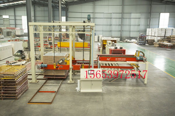 简短介绍:全自动石膏天花板码垛机用于自动打包机之后,将成品进行堆垛工作。能有效的提高生产效率,降低劳动力成本。同时也可用于地板、纸箱、饮料等产品的码垛工作。